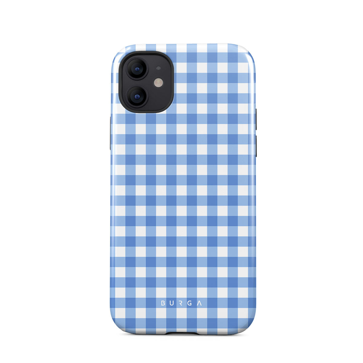 Crisp blue checks are your invitation to lay on the grass, look up at the sky, and find shapes in the clouds—simple joys that make any day lovely. That’s our Lovely Day iPhone 12 phone case design.