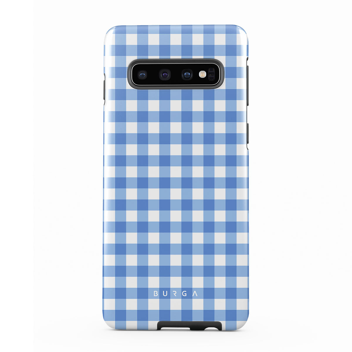 Crisp blue checks are your invitation to lay on the grass, look up at the sky, and find shapes in the clouds—simple joys that make any day lovely. That’s our Lovely Day Samsung Galaxy S10 4G phone case design.