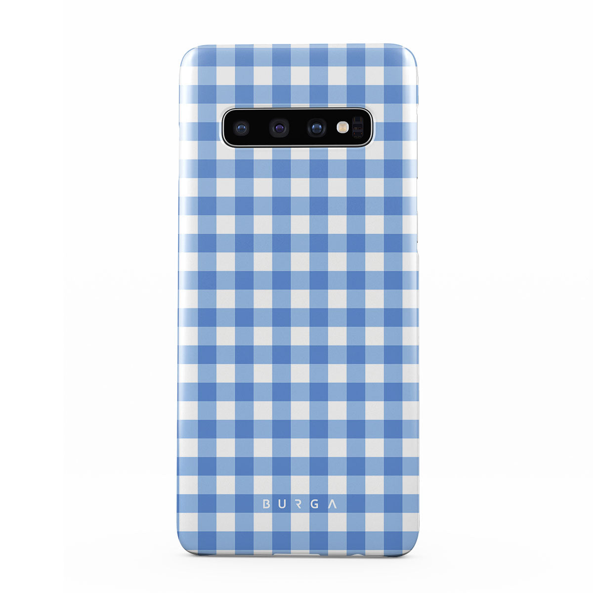 Crisp blue checks are your invitation to lay on the grass, look up at the sky, and find shapes in the clouds—simple joys that make any day lovely. That’s our Lovely Day Samsung Galaxy S10 Plus phone case design.