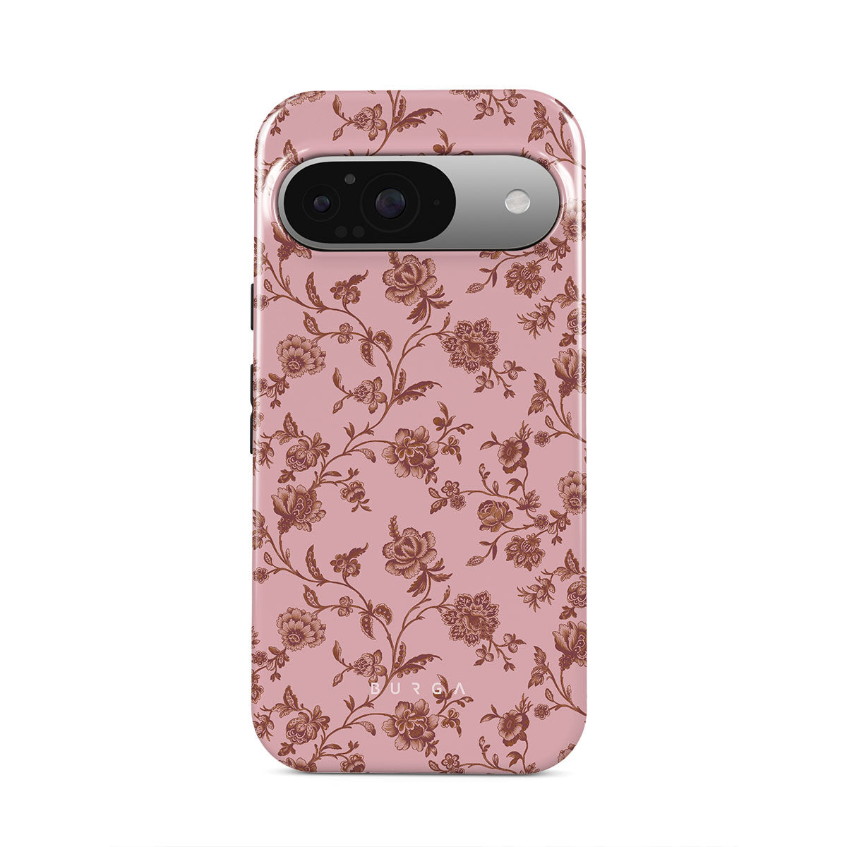 The Lover Google Pixel 9 phone case design: because you're a Lover, not a fighter. Delicate floral motifs across a soft pink background capture the essence of timeless beauty and rustic elegance. Perfect for modern-day cowgirls with a vintage heart.