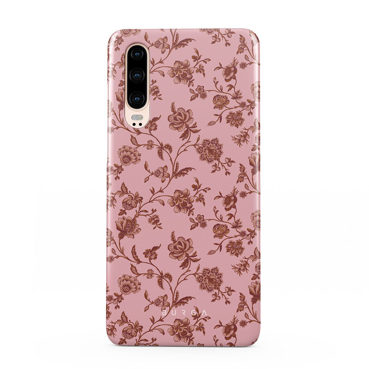 The Lover Huawei P30 phone case design: because you're a Lover, not a fighter. Delicate floral motifs across a soft pink background capture the essence of timeless beauty and rustic elegance. Perfect for modern-day cowgirls with a vintage heart.