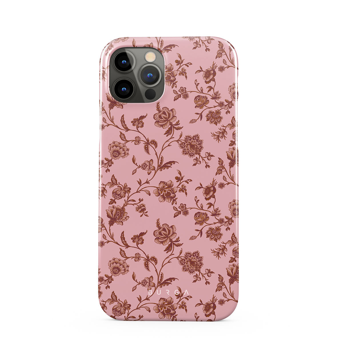 The Lover iPhone 12 Pro Max phone case design: because you're a Lover, not a fighter. Delicate floral motifs across a soft pink background capture the essence of timeless beauty and rustic elegance. Perfect for modern-day cowgirls with a vintage heart.