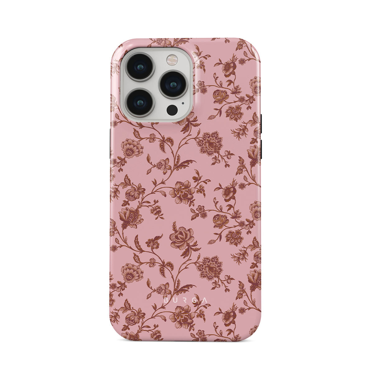 The Lover iPhone 13 Pro phone case design: because you're a Lover, not a fighter. Delicate floral motifs across a soft pink background capture the essence of timeless beauty and rustic elegance. Perfect for modern-day cowgirls with a vintage heart.