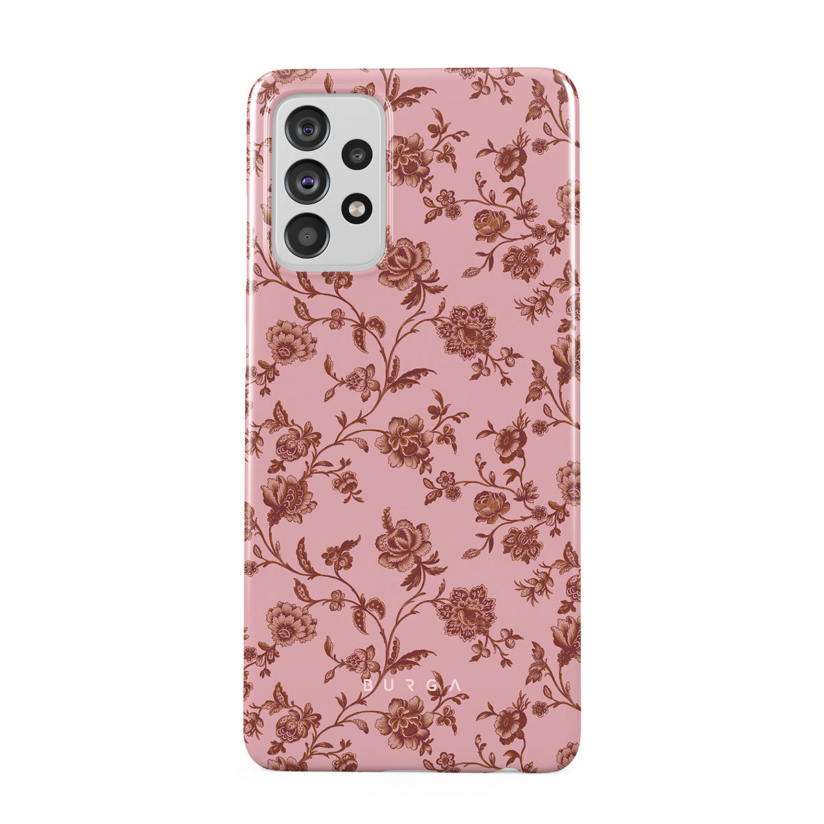 The Lover Samsung Galaxy A72 4G / 5G phone case design: because you're a Lover, not a fighter. Delicate floral motifs across a soft pink background capture the essence of timeless beauty and rustic elegance. Perfect for modern-day cowgirls with a vintage heart.