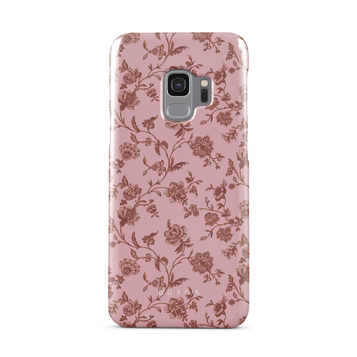 The Lover Samsung Galaxy S9 phone case design: because you're a Lover, not a fighter. Delicate floral motifs across a soft pink background capture the essence of timeless beauty and rustic elegance. Perfect for modern-day cowgirls with a vintage heart.