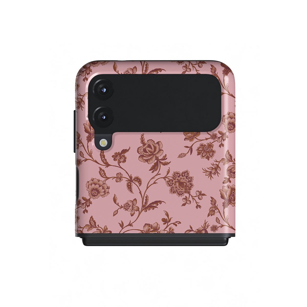 The Lover Samsung Galaxy Z Flip 3 phone case design: because you're a Lover, not a fighter. Delicate floral motifs across a soft pink background capture the essence of timeless beauty and rustic elegance. Perfect for modern-day cowgirls with a vintage heart.
