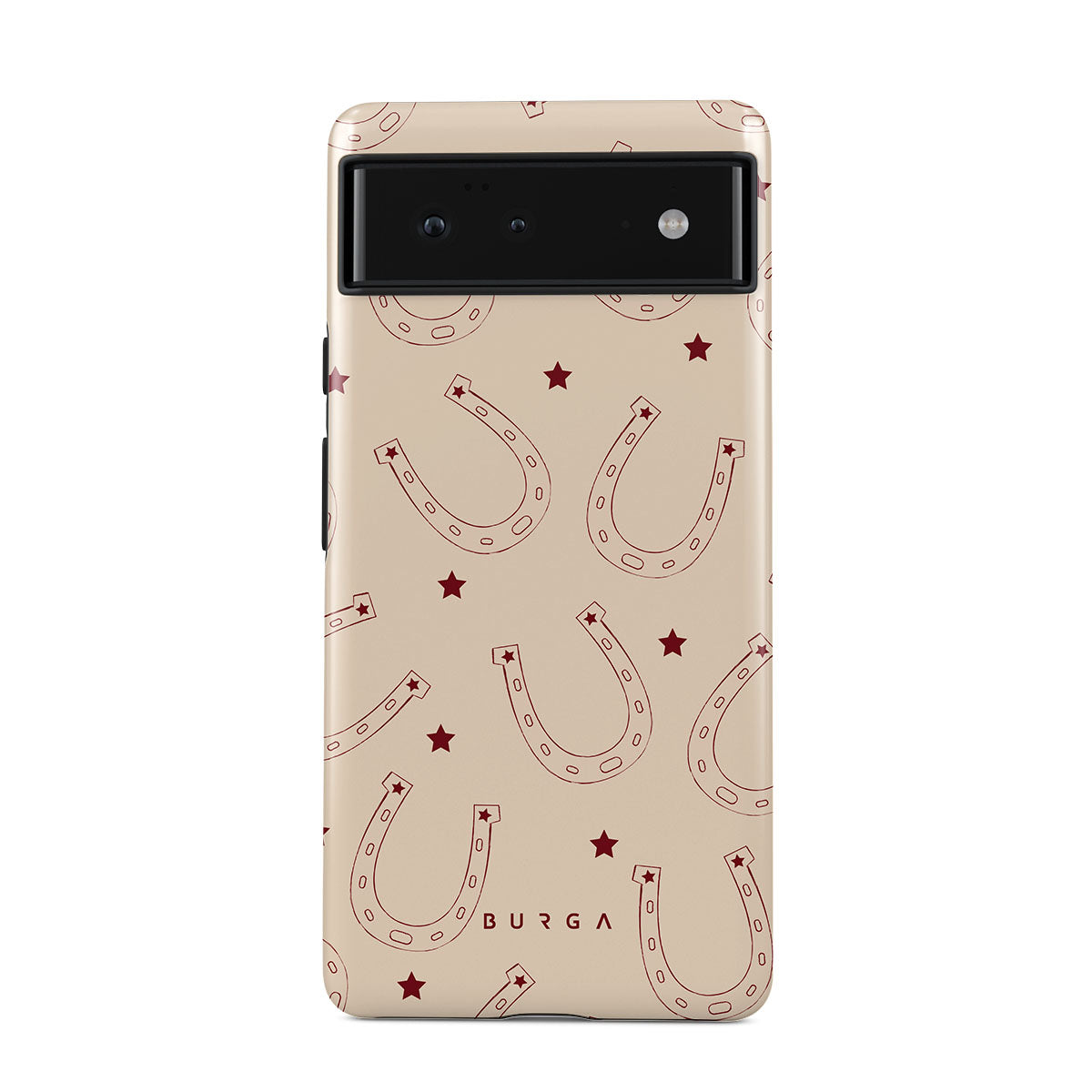 Horseshoes for luck, stars for style. Keep fortune on your side with our Lucky Charm Google Pixel 6a phone case. This design is a playful take on traditional symbols of luck. The earthy tones make it a versatile accessory for any western-inspired outfit—and not only.