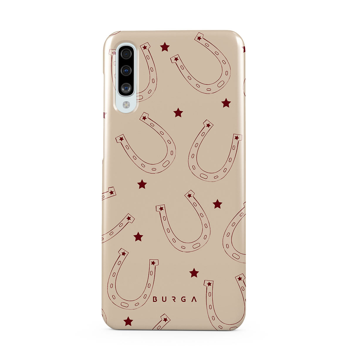Horseshoes for luck, stars for style. Keep fortune on your side with our Lucky Charm Samsung Galaxy A50 phone case. This design is a playful take on traditional symbols of luck. The earthy tones make it a versatile accessory for any western-inspired outfit—and not only.