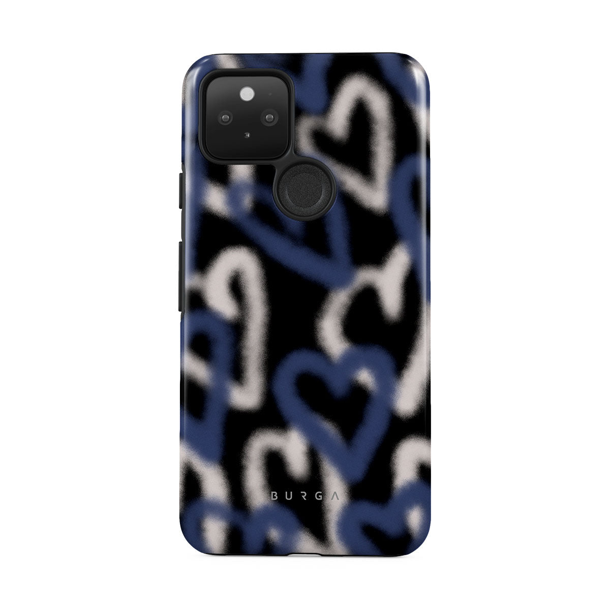 The Lucky You Google Pixel 5 phone case captures the raw, unfiltered pulse of street art. Graffiti hearts in striking blue and white stand out against a black background, their edges softly faded. It’s a design that speaks to the restless who find beauty in chaos and dare to be different.