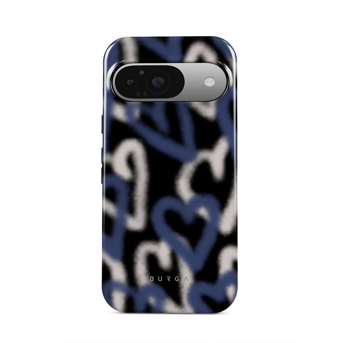 The Lucky You Google Pixel 9 phone case captures the raw, unfiltered pulse of street art. Graffiti hearts in striking blue and white stand out against a black background, their edges softly faded. It’s a design that speaks to the restless who find beauty in chaos and dare to be different.
