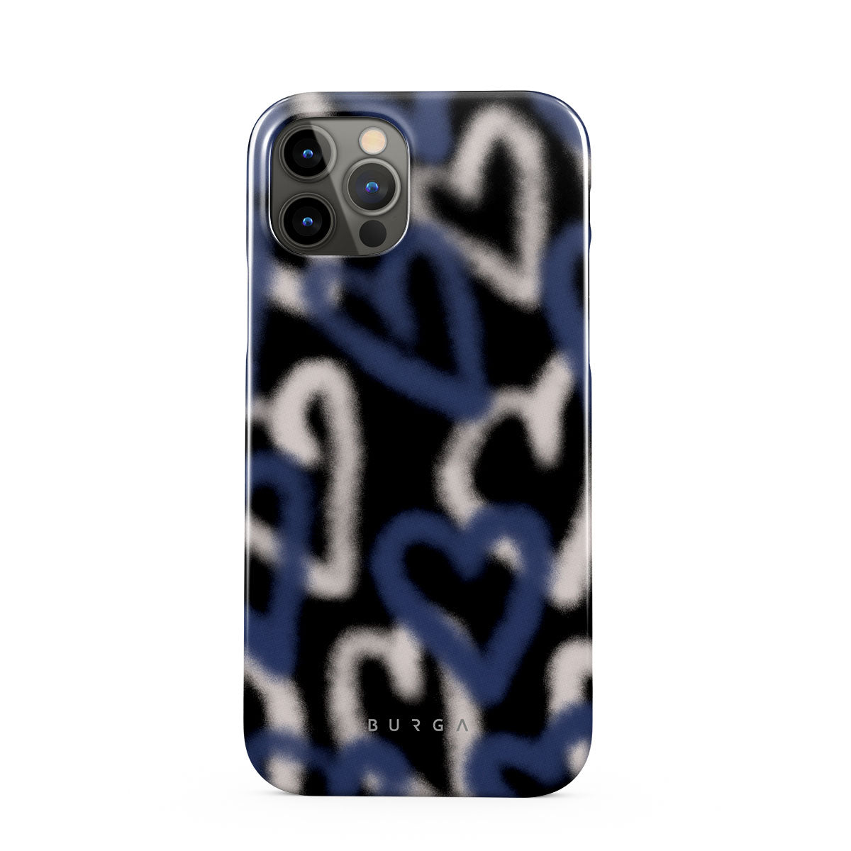 The Lucky You iPhone 12 Pro Max phone case captures the raw, unfiltered pulse of street art. Graffiti hearts in striking blue and white stand out against a black background, their edges softly faded. It’s a design that speaks to the restless who find beauty in chaos and dare to be different.
