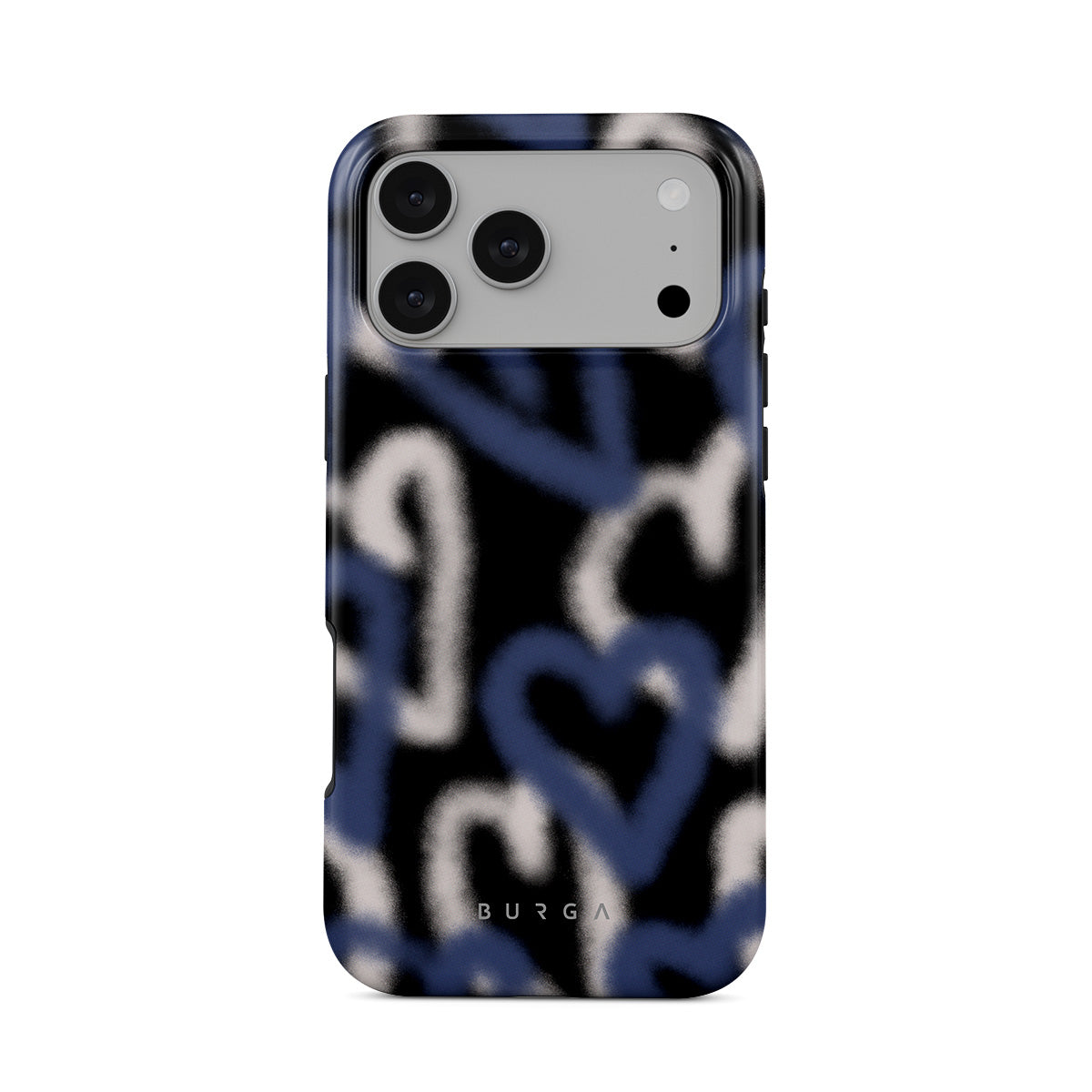 The Lucky You iPhone 17 Pro Max phone case captures the raw, unfiltered pulse of street art. Graffiti hearts in striking blue and white stand out against a black background, their edges softly faded. It’s a design that speaks to the restless who find beauty in chaos and dare to be different.