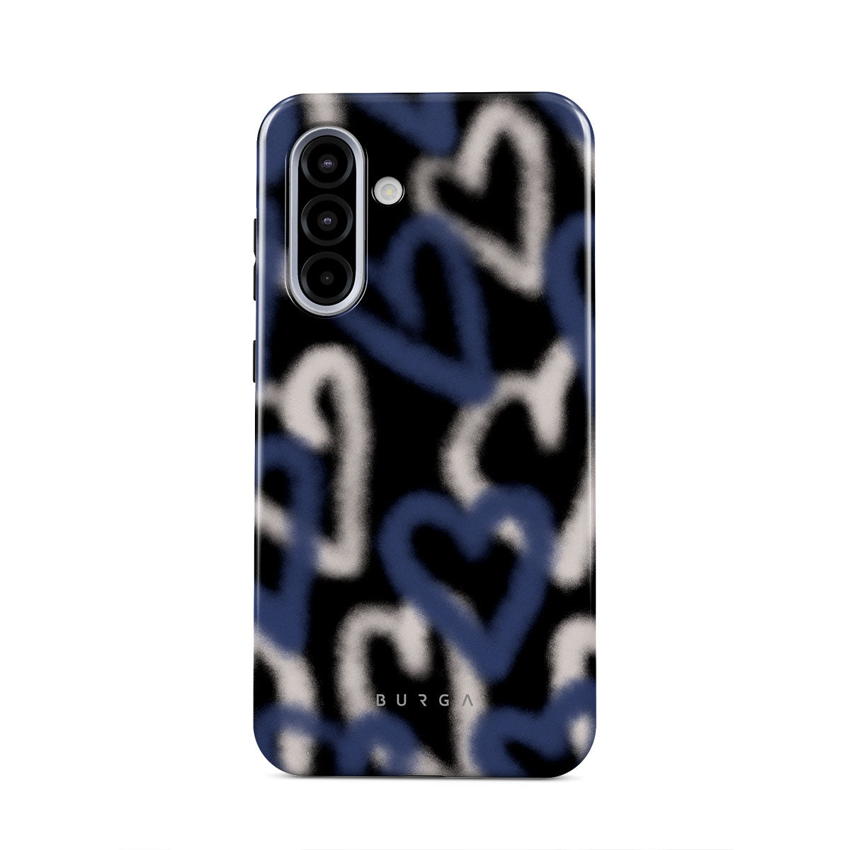 The Lucky You Samsung Galaxy A56 5G phone case captures the raw, unfiltered pulse of street art. Graffiti hearts in striking blue and white stand out against a black background, their edges softly faded. It’s a design that speaks to the restless who find beauty in chaos and dare to be different.