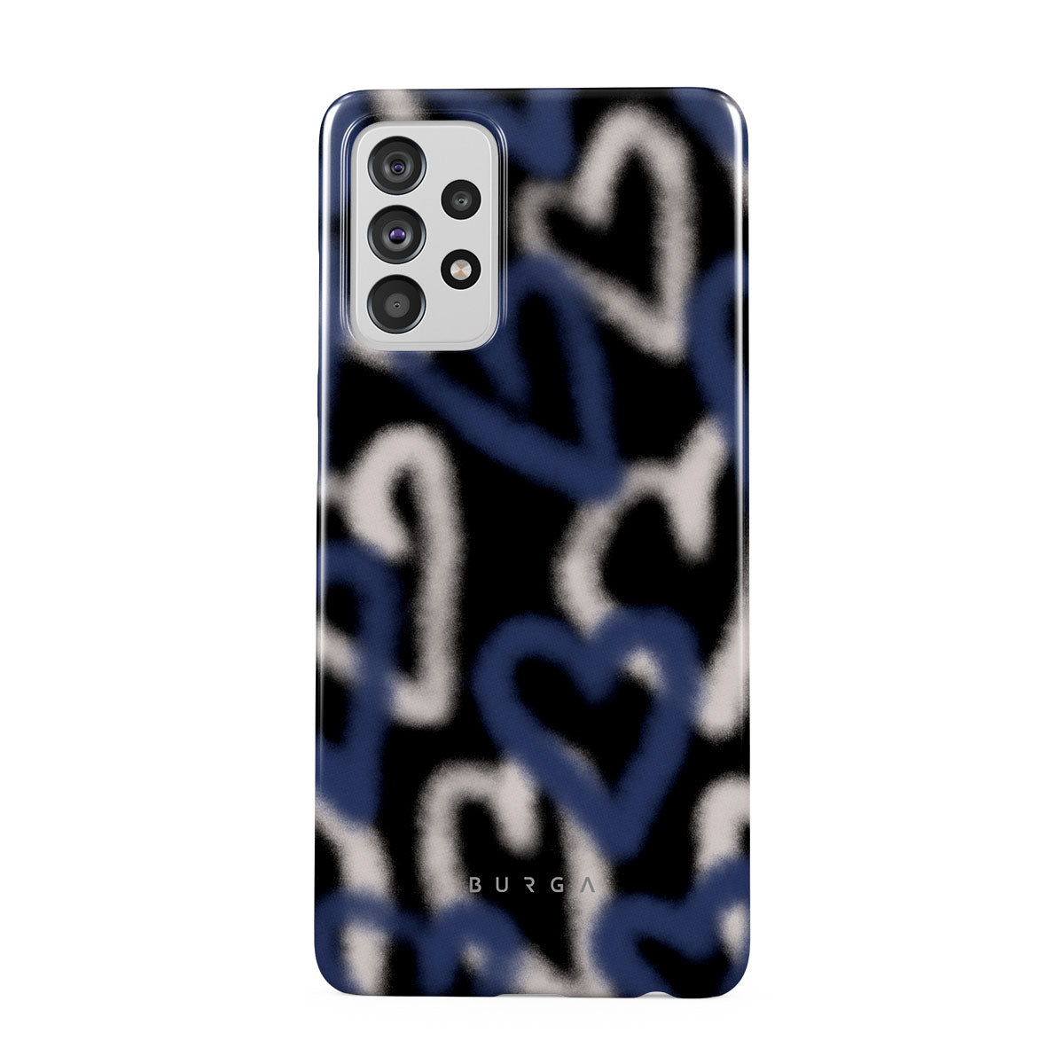 The Lucky You Samsung Galaxy A72 4G / 5G phone case captures the raw, unfiltered pulse of street art. Graffiti hearts in striking blue and white stand out against a black background, their edges softly faded. It’s a design that speaks to the restless who find beauty in chaos and dare to be different.