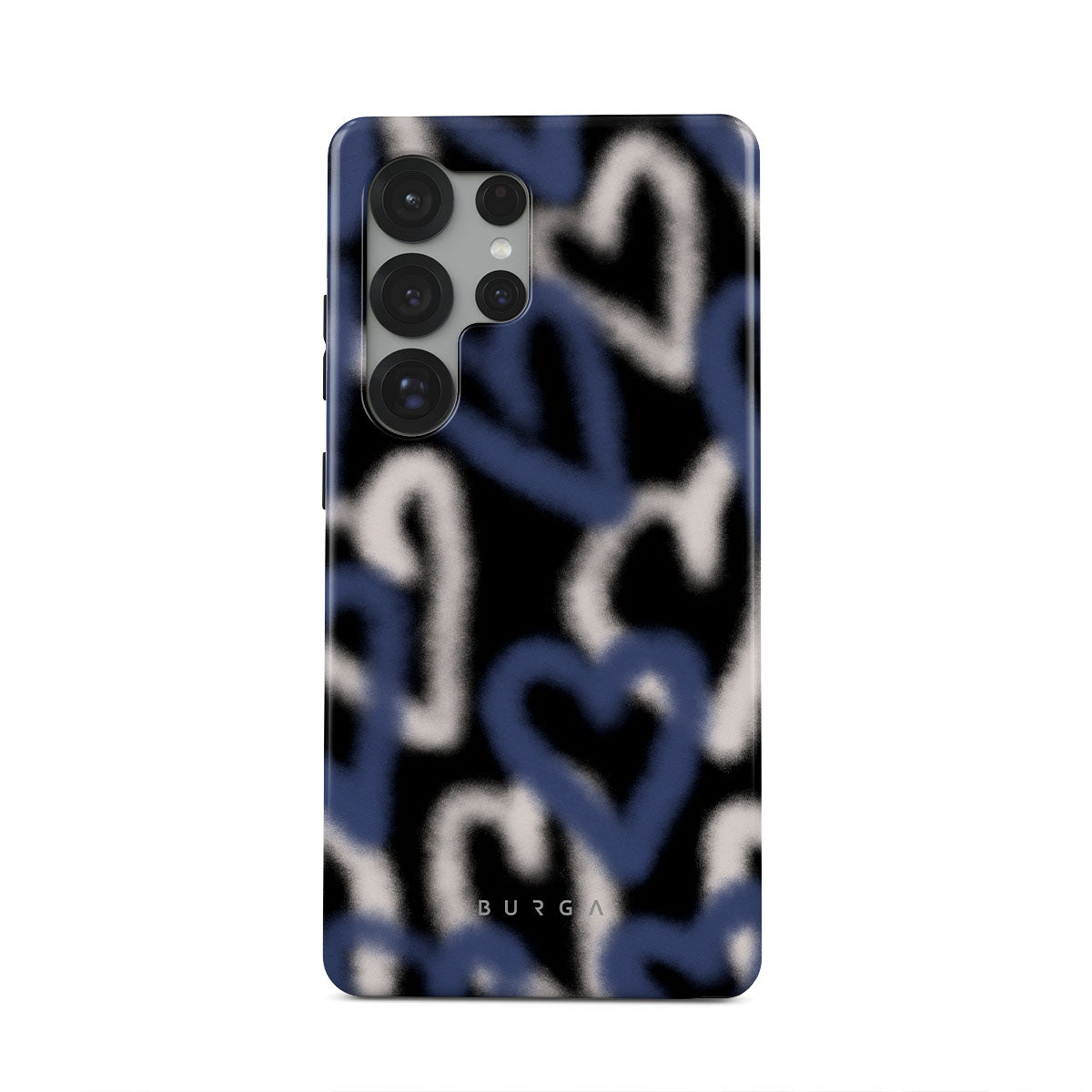 The Lucky You Samsung Galaxy S25 Ultra phone case captures the raw, unfiltered pulse of street art. Graffiti hearts in striking blue and white stand out against a black background, their edges softly faded. It’s a design that speaks to the restless who find beauty in chaos and dare to be different.