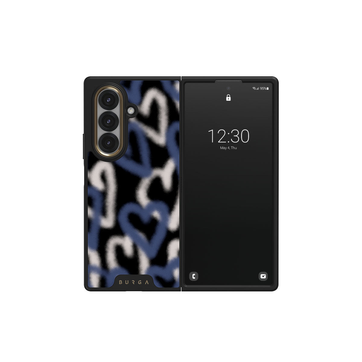 The Lucky You Samsung Galaxy Z Fold 7 phone case captures the raw, unfiltered pulse of street art. Graffiti hearts in striking blue and white stand out against a black background, their edges softly faded. It’s a design that speaks to the restless who find beauty in chaos and dare to be different.