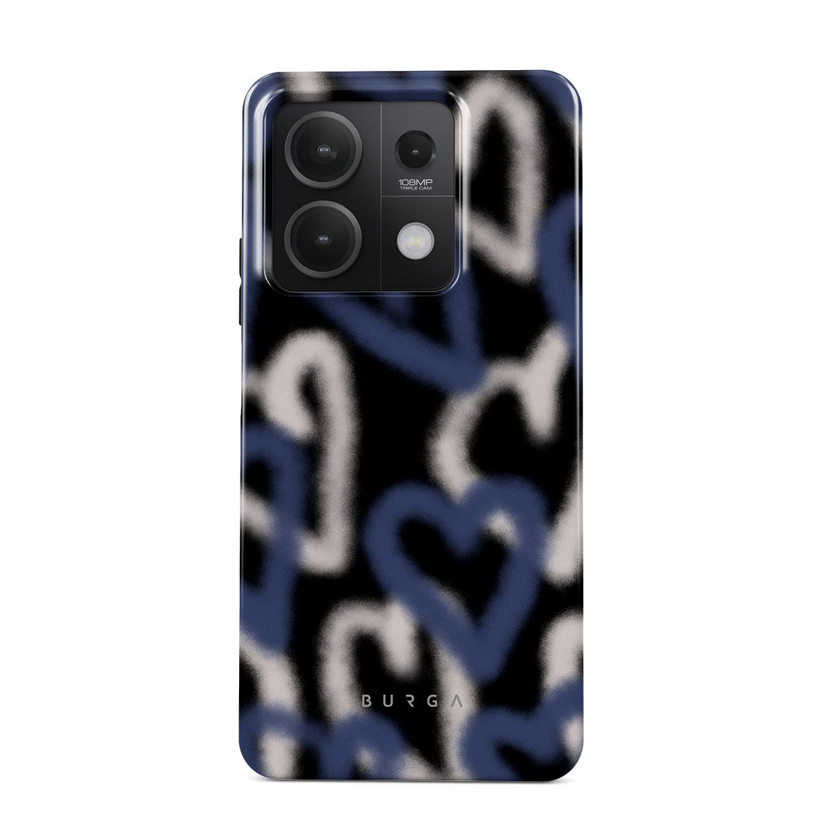 The Lucky You Xiaomi Redmi Note 13 5G phone case captures the raw, unfiltered pulse of street art. Graffiti hearts in striking blue and white stand out against a black background, their edges softly faded. It’s a design that speaks to the restless who find beauty in chaos and dare to be different.