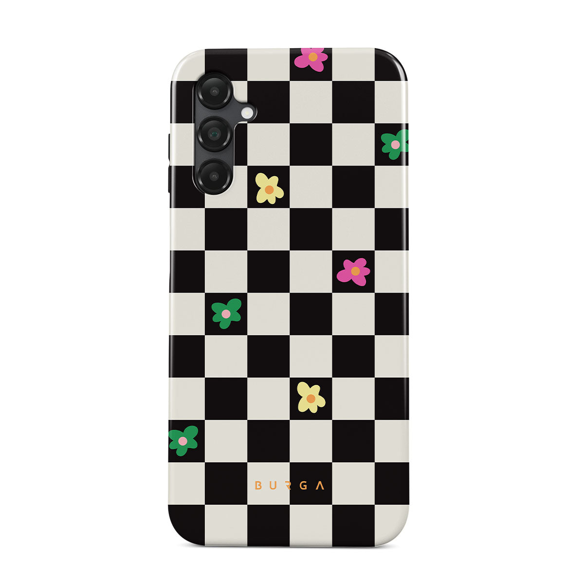 Take time to relax with our Lunch Break - Samsung Galaxy A25 phone case. The playful addition of colorful retro flowers to the classical black and white checkered pattern will add that extra pop of color. It will bring that much-needed *oomph* to your phone. With this playful design, you can keep your phone cute and protected!