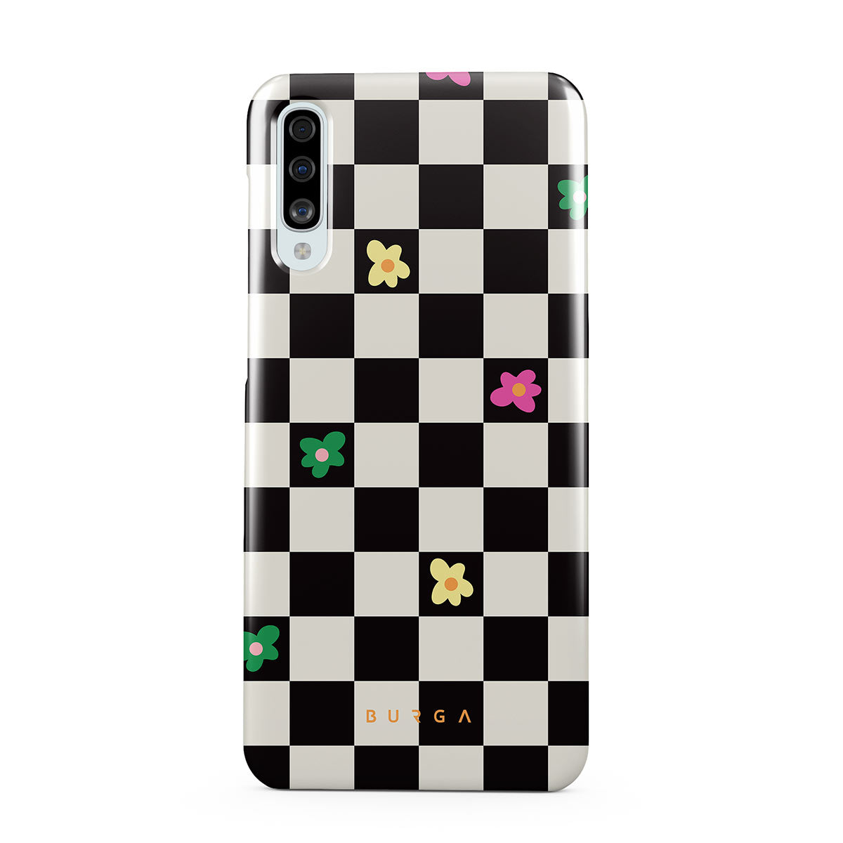 Take time to relax with our Lunch Break - Samsung Galaxy A50 phone case. The playful addition of colorful retro flowers to the classical black and white checkered pattern will add that extra pop of color. It will bring that much-needed *oomph* to your phone. With this playful design, you can keep your phone cute and protected!