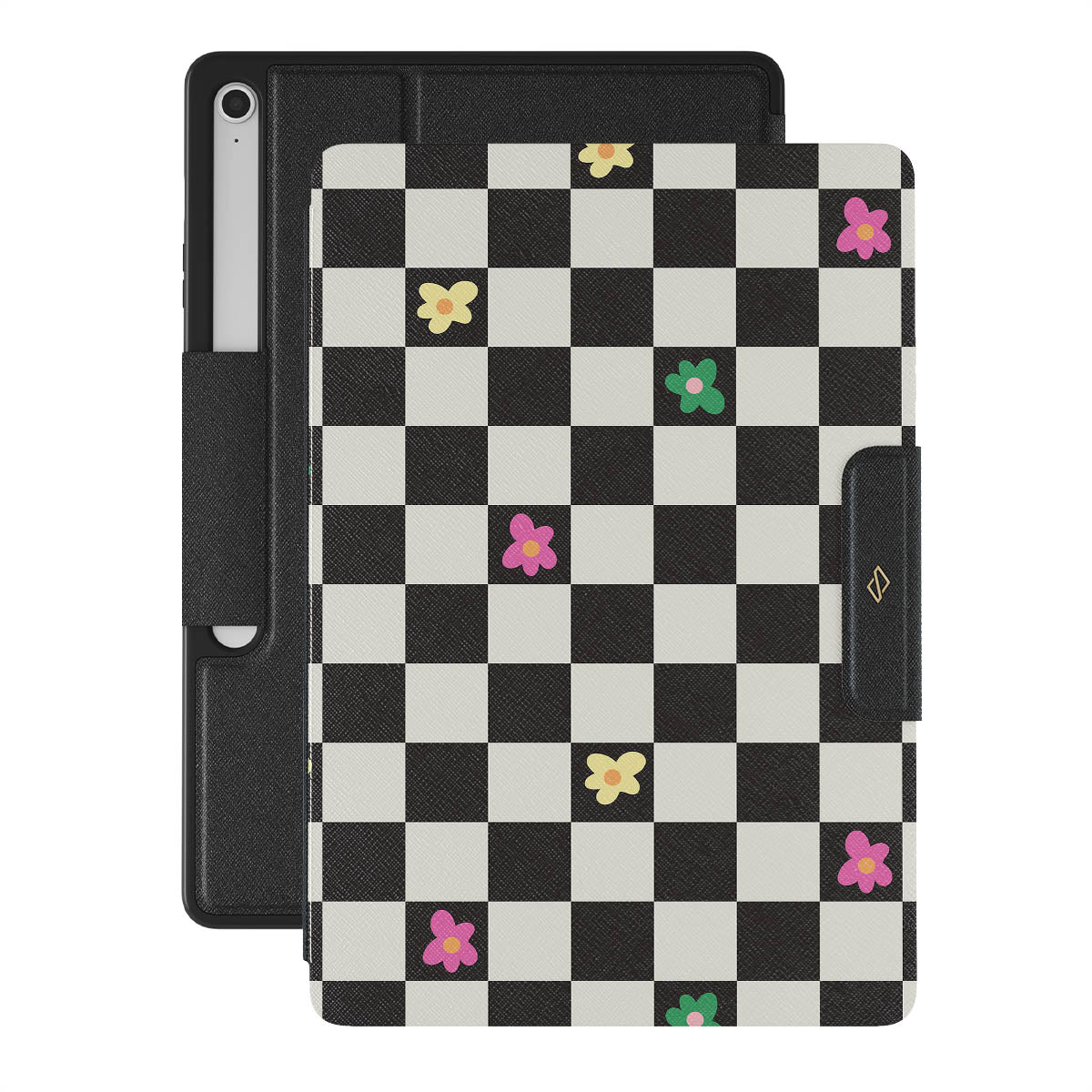 Take time to relax with our Lunch Break - Samsung Galaxy Tab S10+ FE folio case. The playful addition of colorful retro flowers to the classical black and white checkered pattern will add that extra pop of color. It will bring that much-needed *oomph* to your Galaxy Tab. With this playful design, you can keep your Galaxy Tab cute and protected!