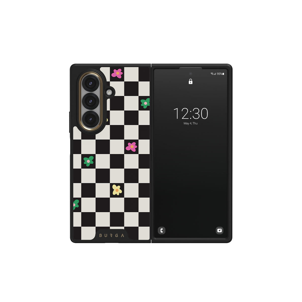 Take time to relax with our Lunch Break - Samsung Galaxy Z Fold 7 phone case. The playful addition of colorful retro flowers to the classical black and white checkered pattern will add that extra pop of color. It will bring that much-needed *oomph* to your phone. With this playful design, you can keep your phone cute and protected!