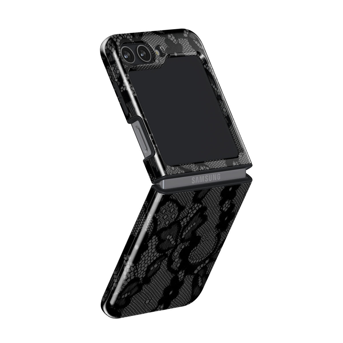 Inspired by the intricate patterns of lace gowns, our Magnetic design is perfect for those with a love for the drama and romance of old Hollywood. This Samsung Galaxy Z Flip 5 phone case is a statement of effortless, mysterious femininity, turning you into the main character where you go.
