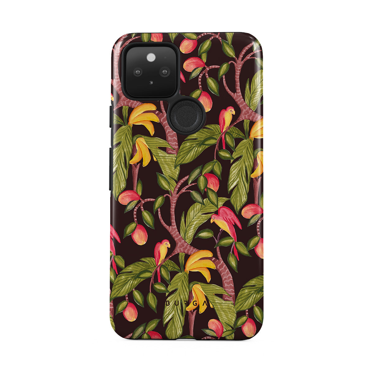 A lush botanical fantasy where ripe mangoes hang like forbidden fruit. Deep greens and juicy oranges pull you into a tropical escape. If this Google Pixel 5 phone case design had a voice, it would purr.