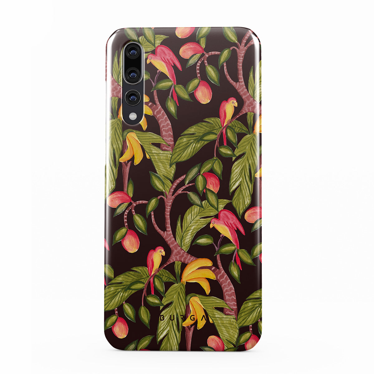 A lush botanical fantasy where ripe mangoes hang like forbidden fruit. Deep greens and juicy oranges pull you into a tropical escape. If this Huawei P20 phone case design had a voice, it would purr.