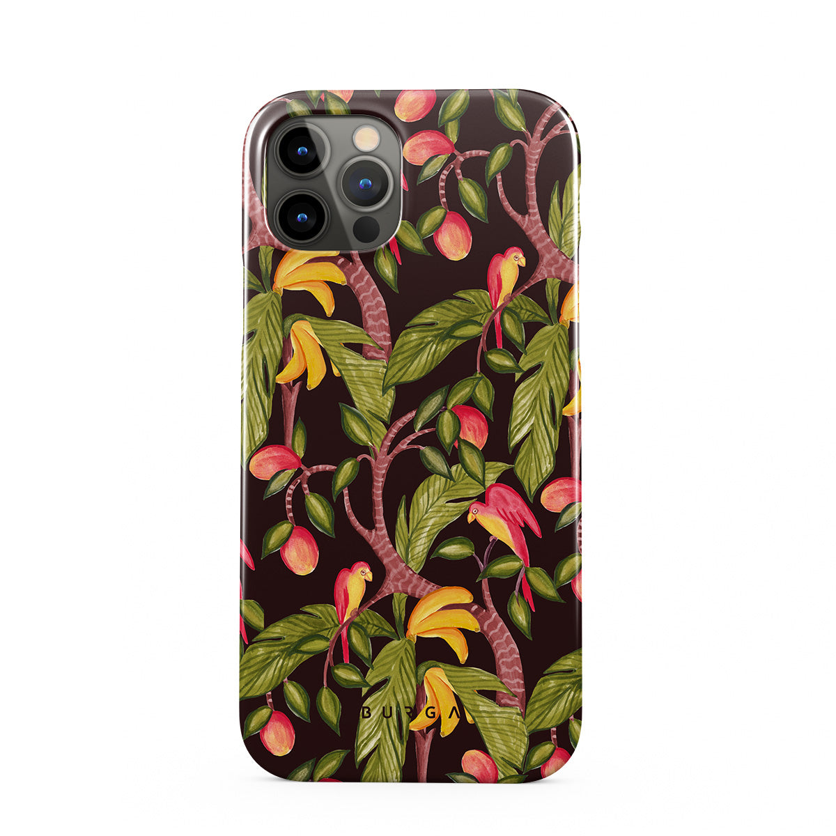 A lush botanical fantasy where ripe mangoes hang like forbidden fruit. Deep greens and juicy oranges pull you into a tropical escape. If this iPhone 12 Pro Max phone case design had a voice, it would purr.