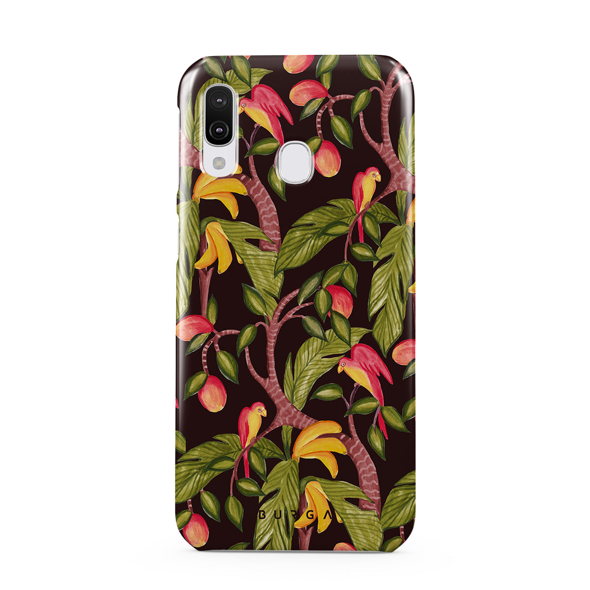 A lush botanical fantasy where ripe mangoes hang like forbidden fruit. Deep greens and juicy oranges pull you into a tropical escape. If this Samsung Galaxy A40 phone case design had a voice, it would purr.