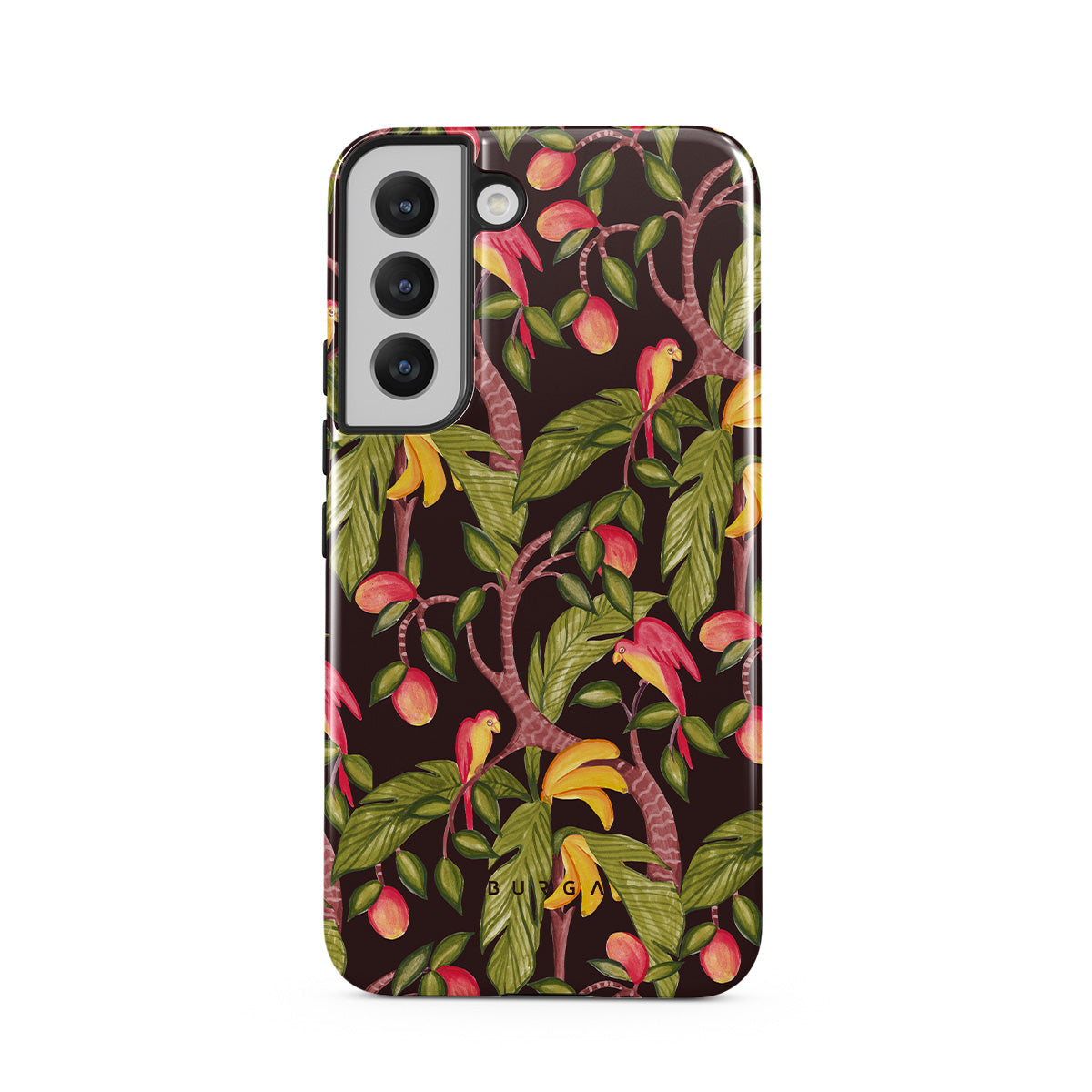 A lush botanical fantasy where ripe mangoes hang like forbidden fruit. Deep greens and juicy oranges pull you into a tropical escape. If this Samsung Galaxy S22 Plus phone case design had a voice, it would purr.