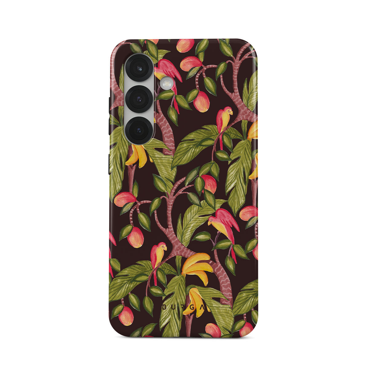 A lush botanical fantasy where ripe mangoes hang like forbidden fruit. Deep greens and juicy oranges pull you into a tropical escape. If this Samsung Galaxy S25 phone case design had a voice, it would purr.