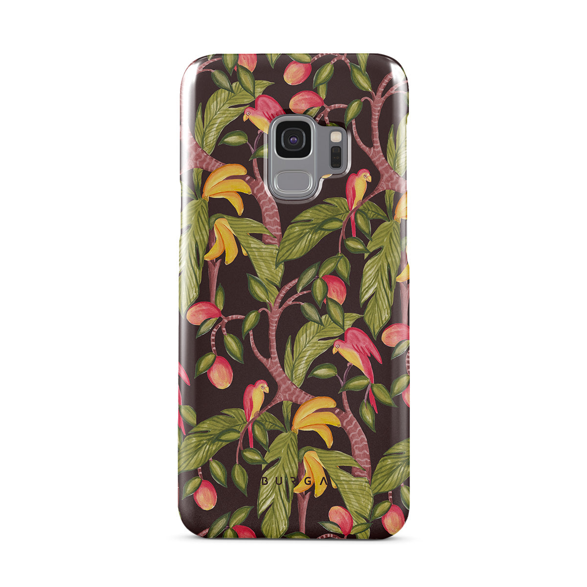 A lush botanical fantasy where ripe mangoes hang like forbidden fruit. Deep greens and juicy oranges pull you into a tropical escape. If this Samsung Galaxy S9 phone case design had a voice, it would purr.
