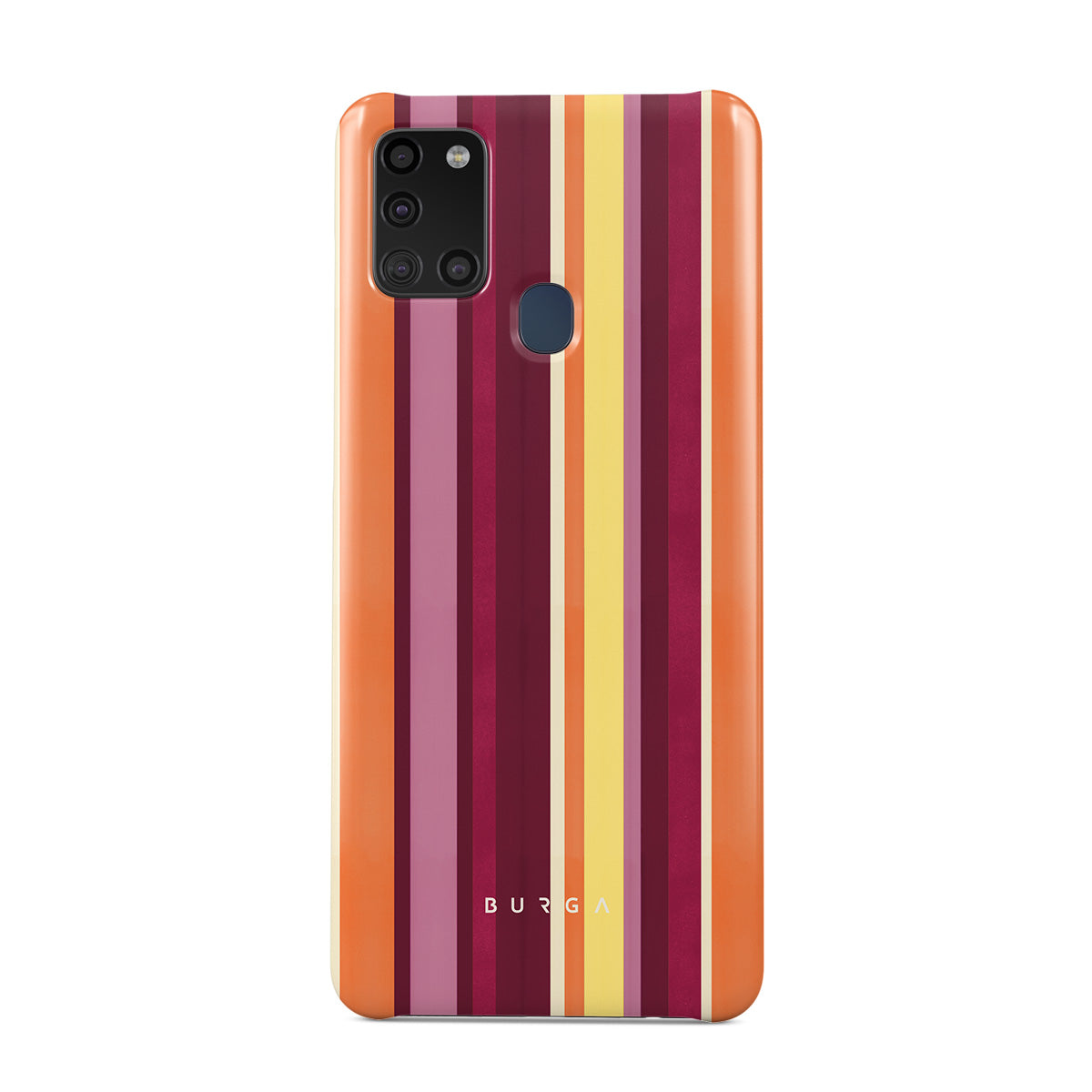 Like a hammock between two trees at golden hour. Stripes that sway gently between tropical and spiritual. This Samsung Galaxy A21s 4G phone case design is made for the moments when doing nothing feels like doing everything.
