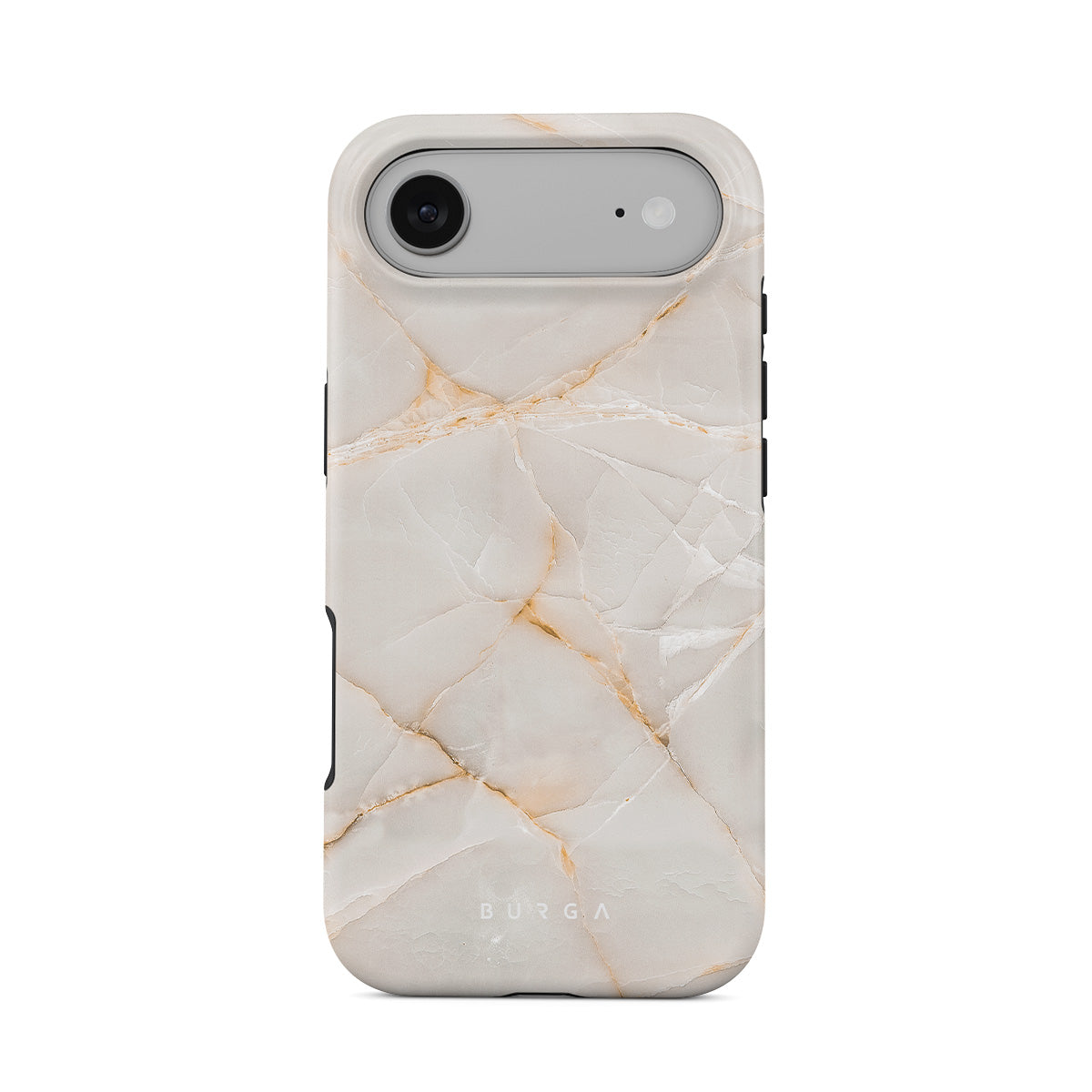 The Vanilla Sand Marble iPhone Air phone case cover features a marble design with creamy canvas showcasing beautiful golden hues. The soft-toned case will add a touch of luxury to the device while protecting it from dangerous falls.