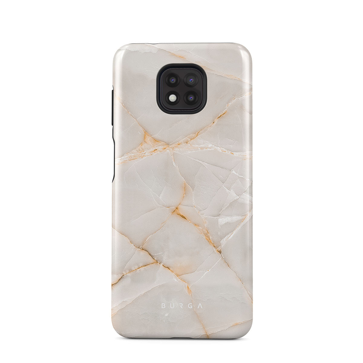 The Vanilla Sand Marble Motorola Moto G Power 2021 phone case cover features a marble design with creamy canvas showcasing beautiful golden hues. The soft-toned case will add a touch of luxury to the device while protecting it from dangerous falls.