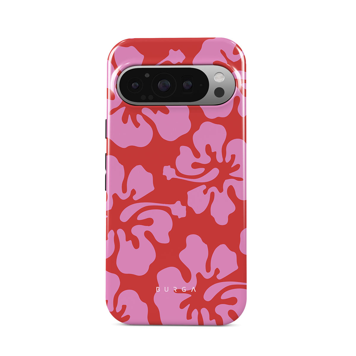 Dive into a sea of floral fantasy with Me Gustas Tu. Featuring oversized coral-toned blooms against a fiery backdrop, this Google Pixel 9 Pro XL phone case design captures the wild heart of tropical flowers—perfect for those who want to carry a touch of exotic flair.