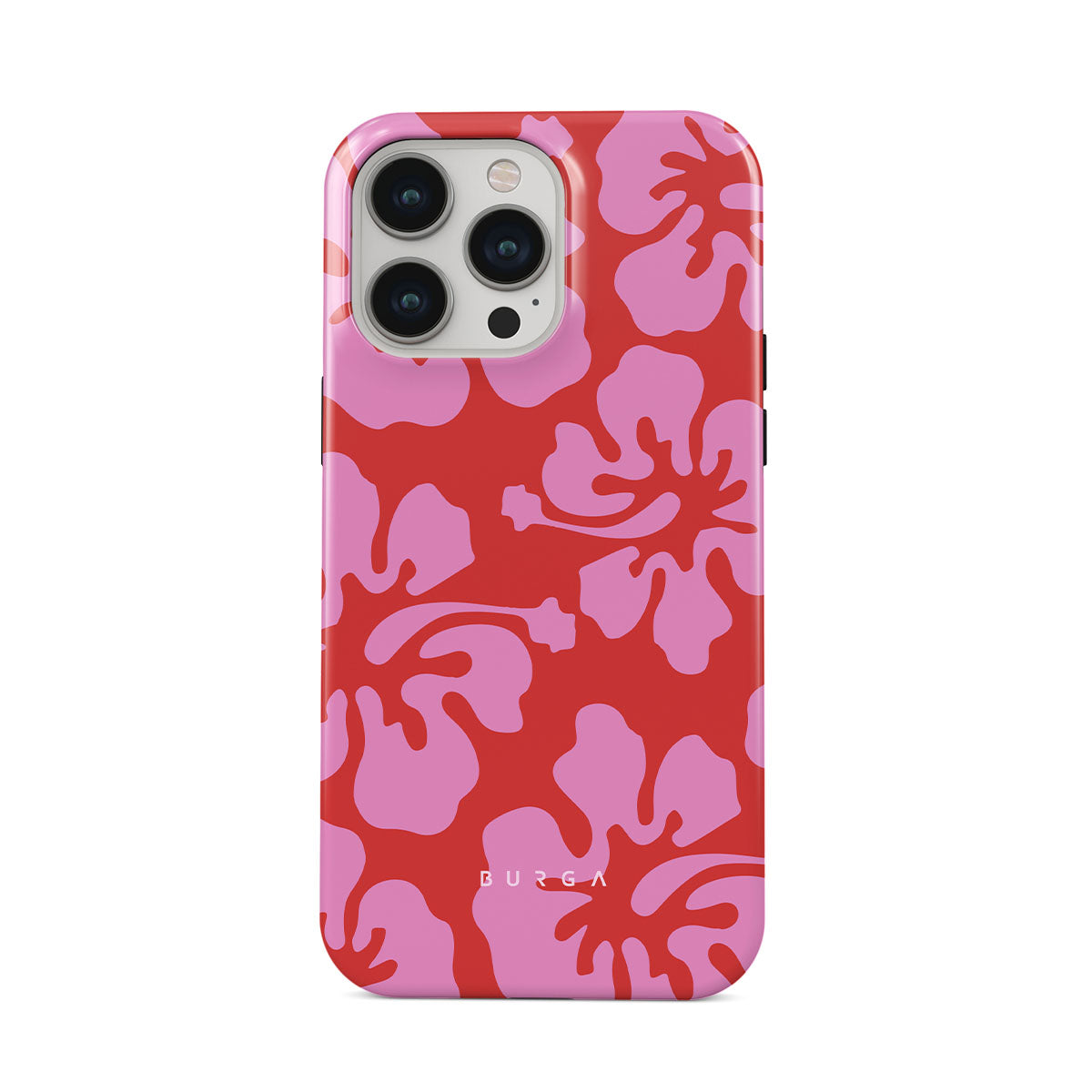 Dive into a sea of floral fantasy with Me Gustas Tu. Featuring oversized coral-toned blooms against a fiery backdrop, this iPhone 14 Pro phone case design captures the wild heart of tropical flowers—perfect for those who want to carry a touch of exotic flair.