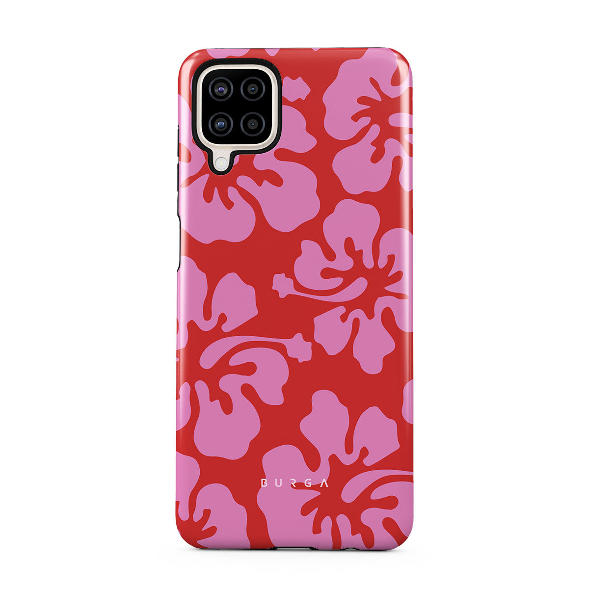 Dive into a sea of floral fantasy with Me Gustas Tu. Featuring oversized coral-toned blooms against a fiery backdrop, this Samsung Galaxy A12 4G phone case design captures the wild heart of tropical flowers—perfect for those who want to carry a touch of exotic flair.