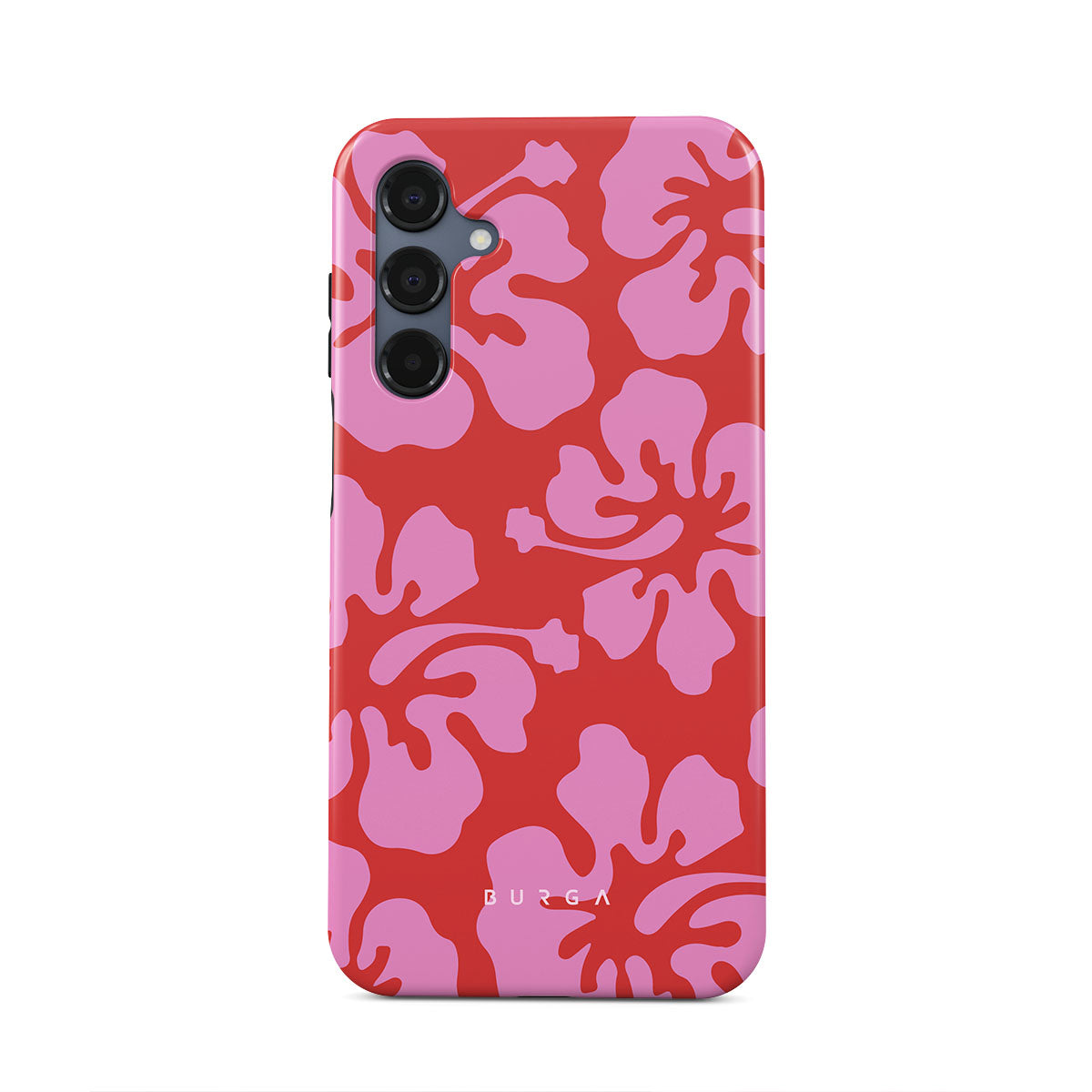Dive into a sea of floral fantasy with Me Gustas Tu. Featuring oversized coral-toned blooms against a fiery backdrop, this Samsung Galaxy A16 phone case design captures the wild heart of tropical flowers—perfect for those who want to carry a touch of exotic flair.