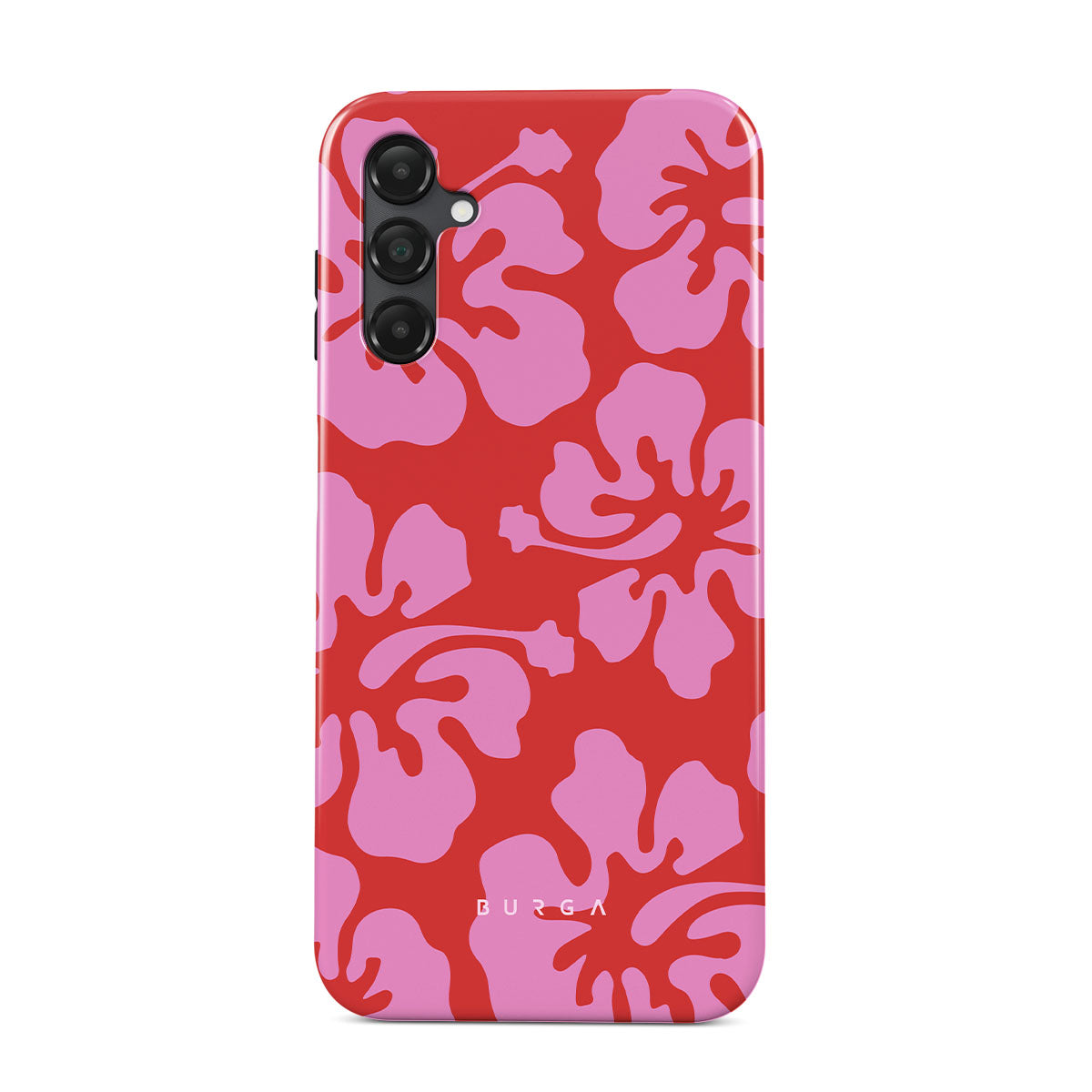 Dive into a sea of floral fantasy with Me Gustas Tu. Featuring oversized coral-toned blooms against a fiery backdrop, this Samsung Galaxy A25 phone case design captures the wild heart of tropical flowers—perfect for those who want to carry a touch of exotic flair.