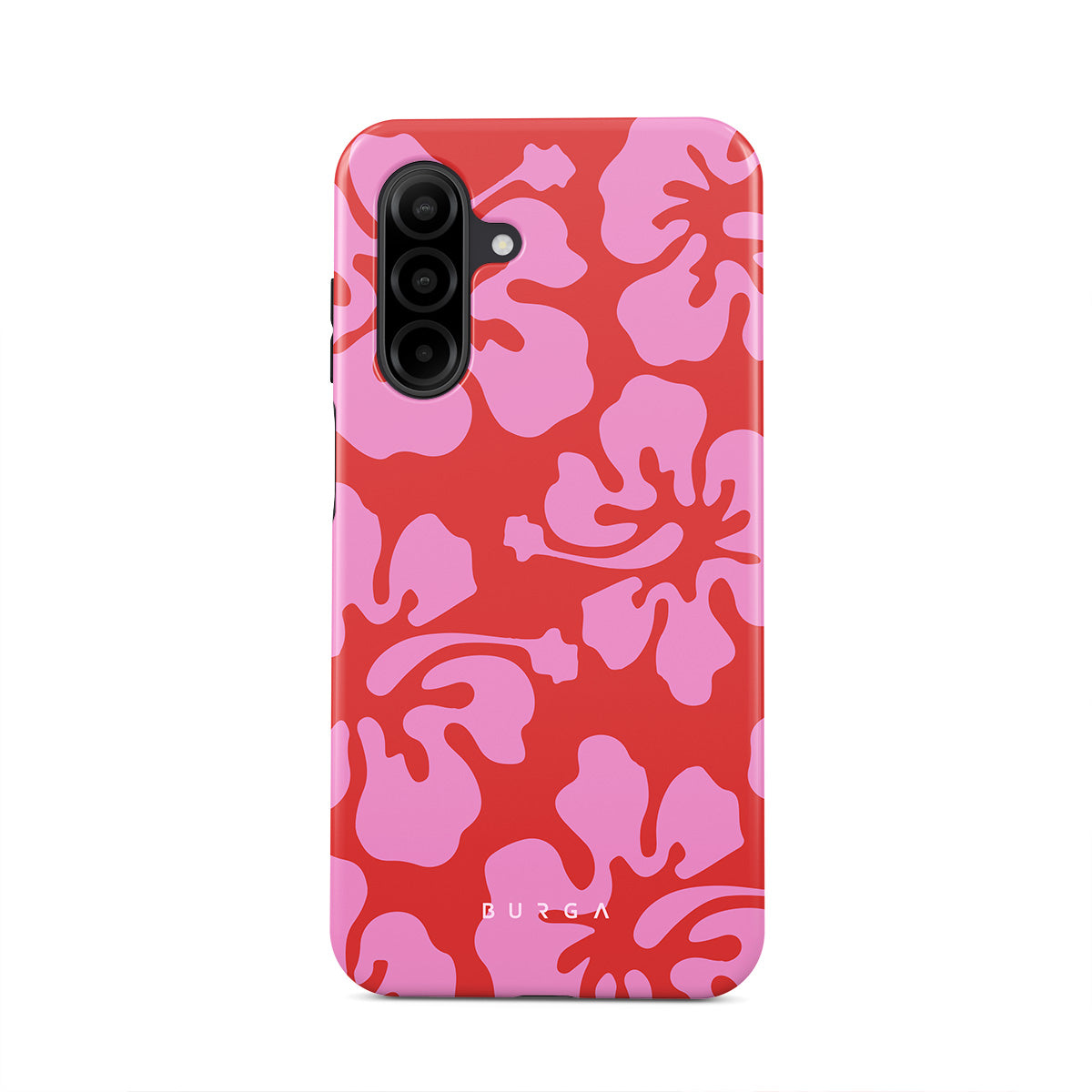 Dive into a sea of floral fantasy with Me Gustas Tu. Featuring oversized coral-toned blooms against a fiery backdrop, this Samsung Galaxy A26 5G phone case design captures the wild heart of tropical flowers—perfect for those who want to carry a touch of exotic flair.