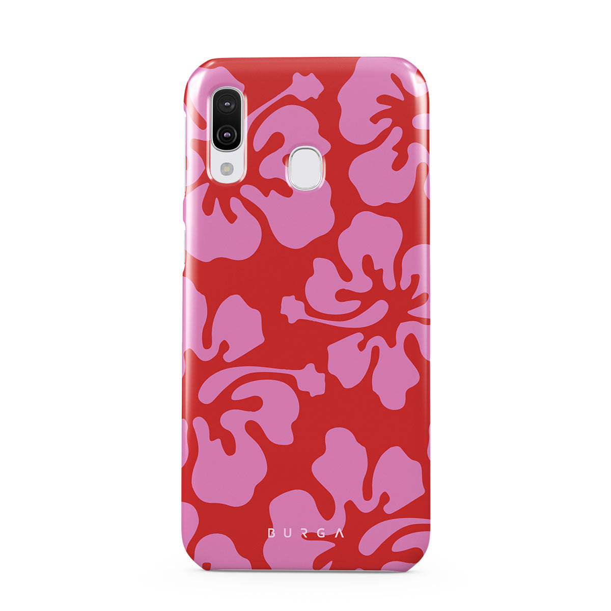 Dive into a sea of floral fantasy with Me Gustas Tu. Featuring oversized coral-toned blooms against a fiery backdrop, this Samsung Galaxy A40 phone case design captures the wild heart of tropical flowers—perfect for those who want to carry a touch of exotic flair.