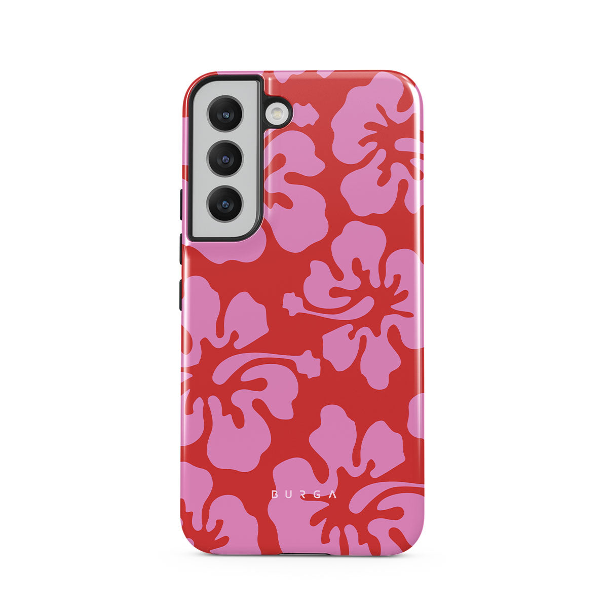Dive into a sea of floral fantasy with Me Gustas Tu. Featuring oversized coral-toned blooms against a fiery backdrop, this Samsung Galaxy S22 phone case design captures the wild heart of tropical flowers—perfect for those who want to carry a touch of exotic flair.