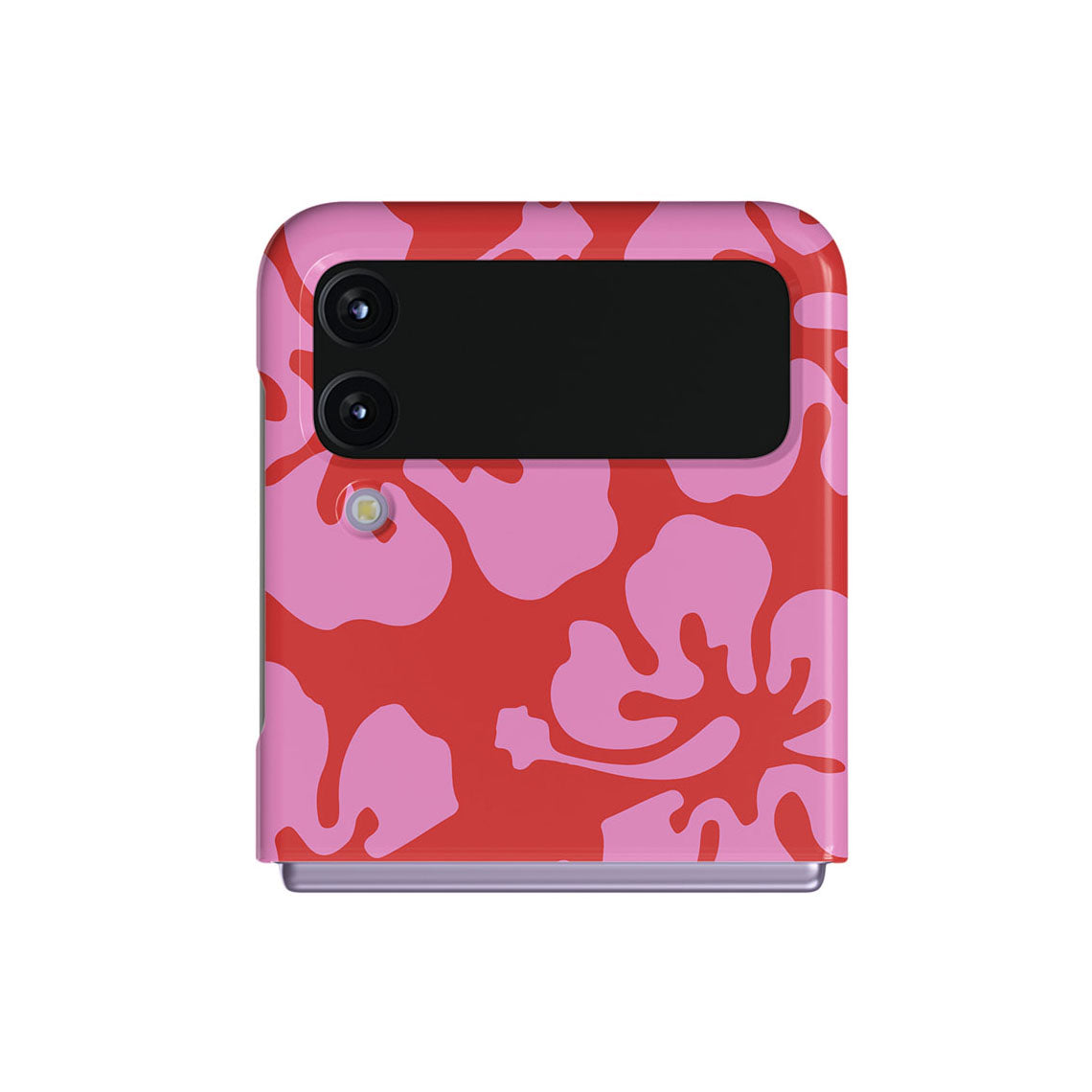 Dive into a sea of floral fantasy with Me Gustas Tu. Featuring oversized coral-toned blooms against a fiery backdrop, this Samsung Galaxy Z Flip 4 phone case design captures the wild heart of tropical flowers—perfect for those who want to carry a touch of exotic flair.