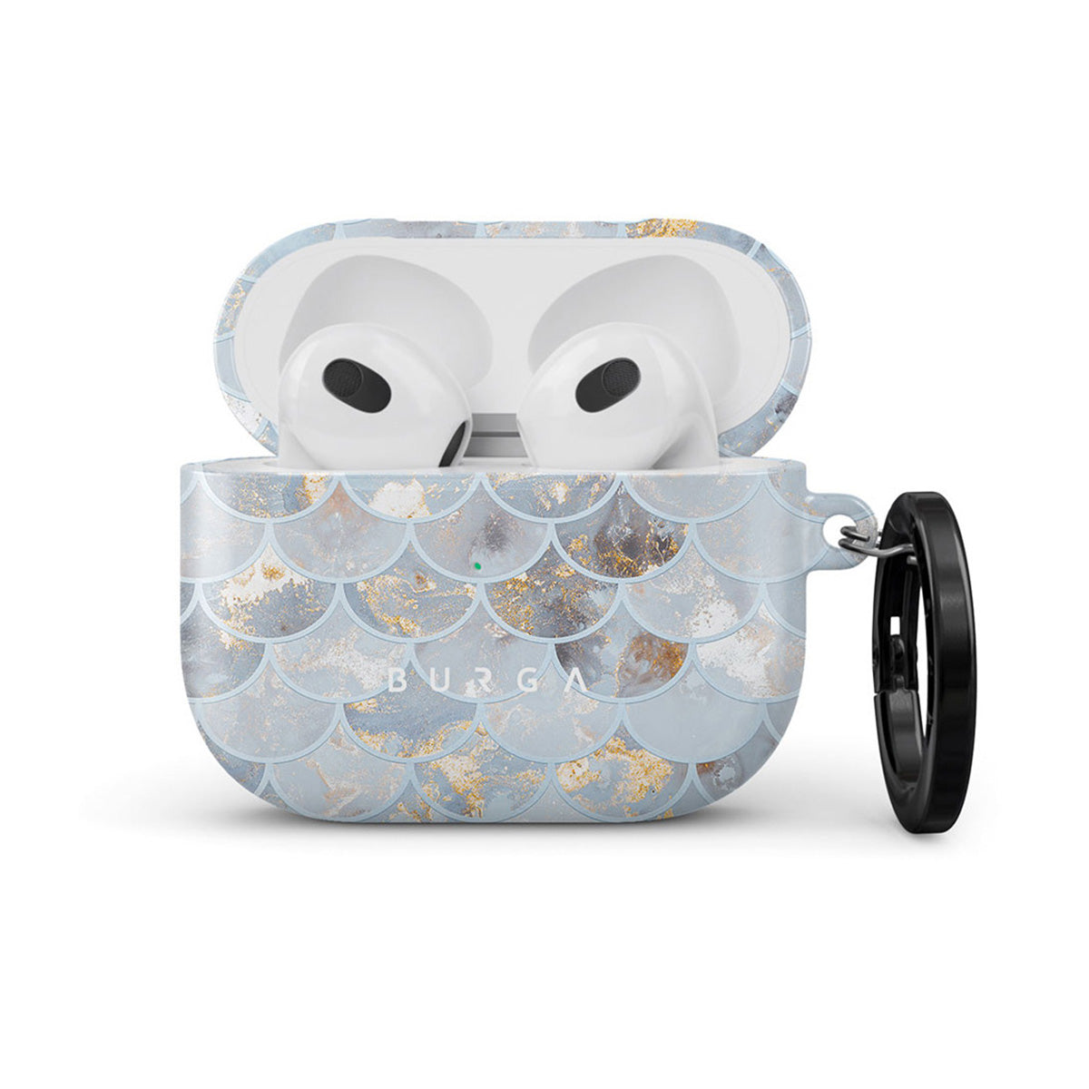 Mermaid reimagined. Take this popular and beloved mermaid pattern of our Apple Airpods 3 case cover inspired by all the stories about mermaids. Add some cute charm to the melodies of a dreamy mind and keep your AirPods safe and sound. Our case fits perfectly snug around Apple Airpods 3 . “Like a glove!” one might say. And it won’t disrupt the wireless charging capabilities of the newer model. There’s even an LED light indicator to prove it (don’t worry, wired charging still works, too). When fitted, the BURGA case will protect the delicate Apple Airpods 3 case beneath it from scratches, bumps, and drops while remaining scratch-free itself. Our signature design pattern prints are High Quality, and will never peel or fade away- thanks to our unique printing technology. And finally, a handy carabiner is there to make your life easier and more convenient: just snap it around your keys or belt loop and tackle the day head-on. Your music is right there by your side when you need it.