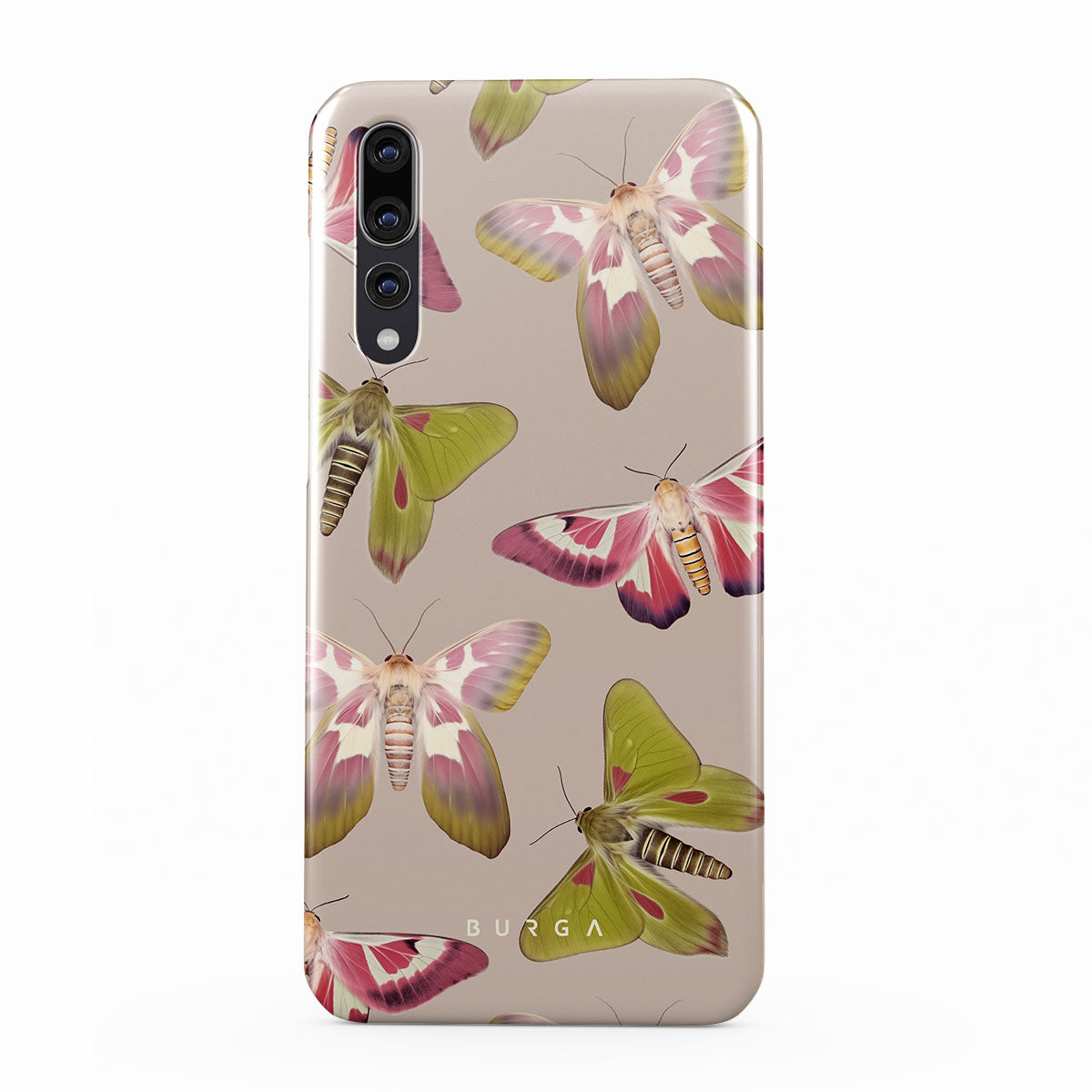 A tapestry of muted-toned moths — their wing patterns echoing tales of transformation and resilience found in nature's delicate beings. These moths, wings wide, serve as silent mentors, teaching us that every phase of life and change holds its own magic and mystery. Discover our Metamorphosis Huawei P20 phone casedesign.