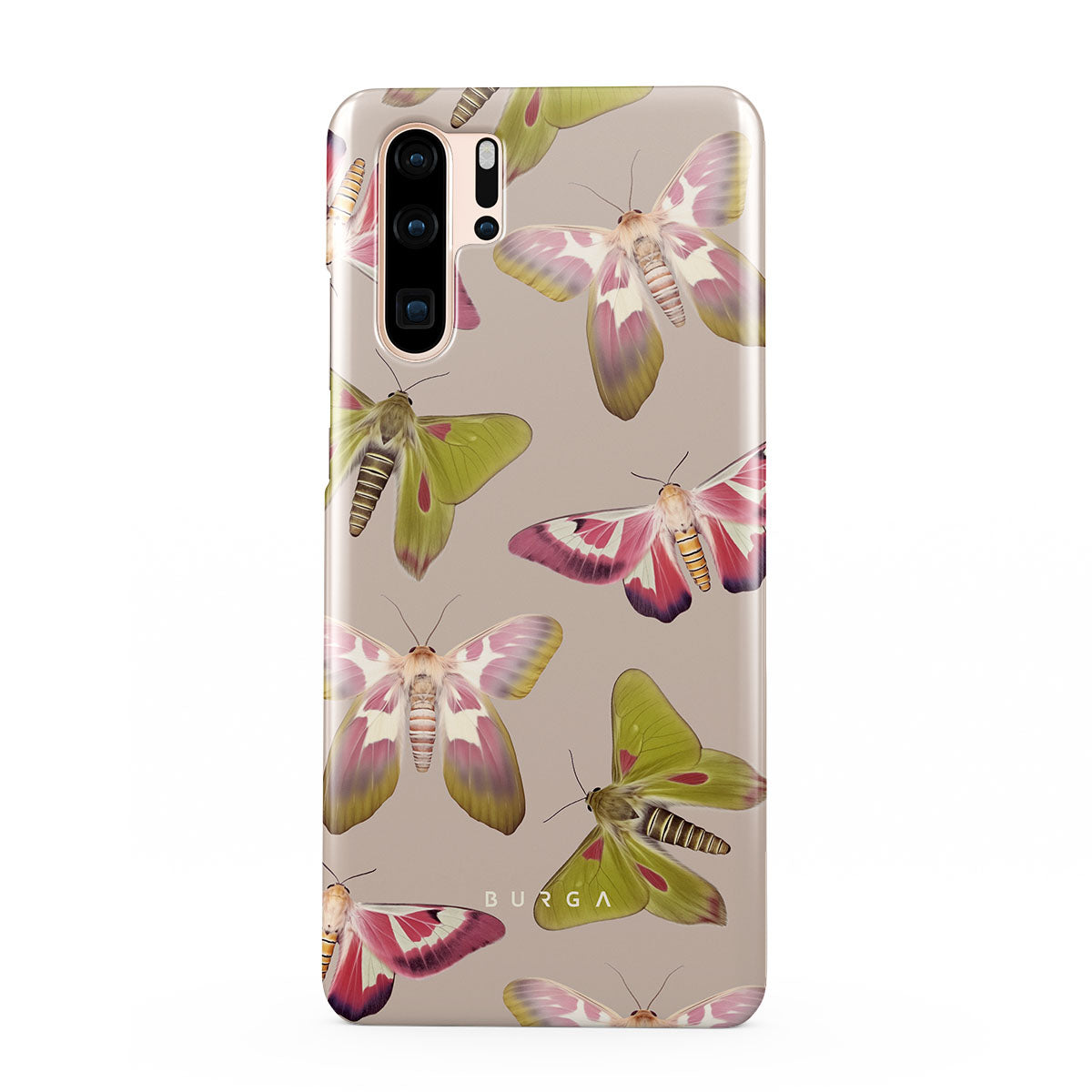 A tapestry of muted-toned moths — their wing patterns echoing tales of transformation and resilience found in nature's delicate beings. These moths, wings wide, serve as silent mentors, teaching us that every phase of life and change holds its own magic and mystery. Discover our Metamorphosis Huawei P30 Pro phone casedesign.
