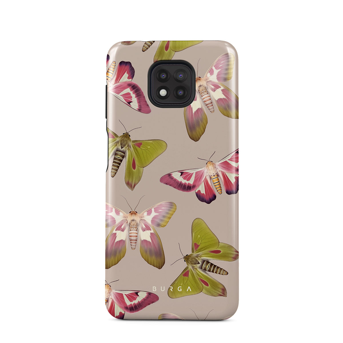 A tapestry of muted-toned moths — their wing patterns echoing tales of transformation and resilience found in nature's delicate beings. These moths, wings wide, serve as silent mentors, teaching us that every phase of life and change holds its own magic and mystery. Discover our Metamorphosis Motorola Moto G Power 2021 phone casedesign.