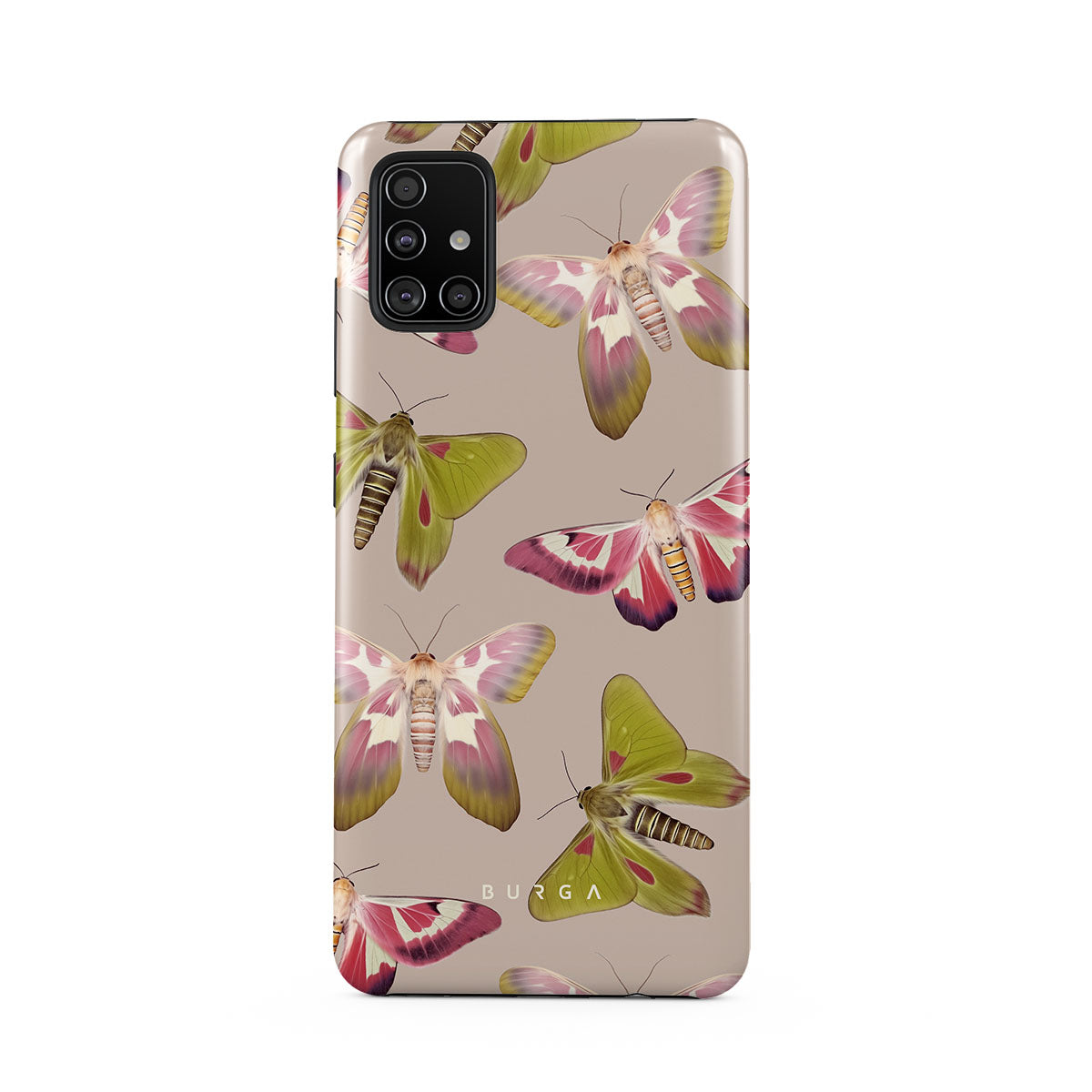 A tapestry of muted-toned moths — their wing patterns echoing tales of transformation and resilience found in nature's delicate beings. These moths, wings wide, serve as silent mentors, teaching us that every phase of life and change holds its own magic and mystery. Discover our Metamorphosis Samsung Galaxy A51 4G phone casedesign.